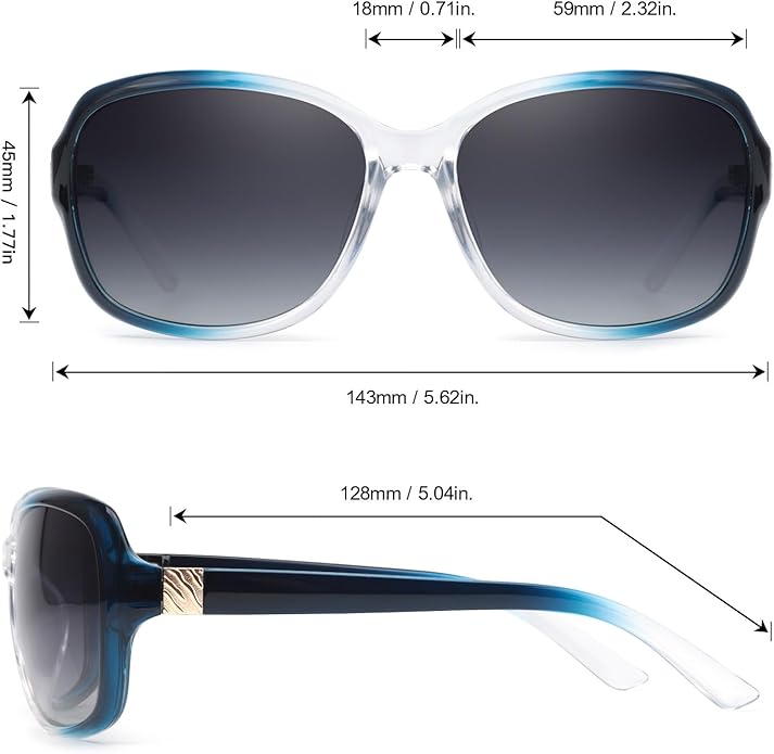 - 59mm Wrap Frame: Flatters Round & Oval Faces, designed by experts for women with round/oval faces, these 59mm wide lenses + 18mm nose bridge balance facial proportions The 128mm temples grip securely without pinching—no more sliding down or red marks.